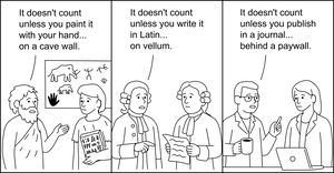 Throughout history, people have shared ideas through the dominant communication tools of their time, cave paintings, handwritten letters, printed pamphlets, digital journals, blogs… What once seemed informal became formal. What once didn’t “count” eventually did. Today’s citation-worthy PDF may be tomorrow’s quaint artifact.