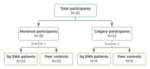 We conducted a cross-sectional case control study of children and adults with SMA, and normally developing peers matched by age at MRI (year of birth) and sex. Given the exploratory nature of the study, we aimed to recruit a convenience sample of 40 participants (20 SMA patients and 20 controls). Recruitment was conducted in the Greater Montreal Area through the McGill University Health Centre Research Institute, and in Calgary through the Alberta Children’s Hospital.